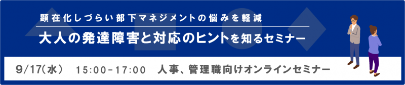 <配置の背景> 弊社講師が管理職向け研修やセミナーで登壇する際、休憩中にとても言いづらそうに相談を受ける内容があります。それは、「部下が間違いを認めず同じミスを繰り返す、同僚とうまく関係性を築けない、発達障害かも?でも、本人には聞けないし、どうすれば…」といったものです。最近、行く先々でこのような相談が増えてきました。
